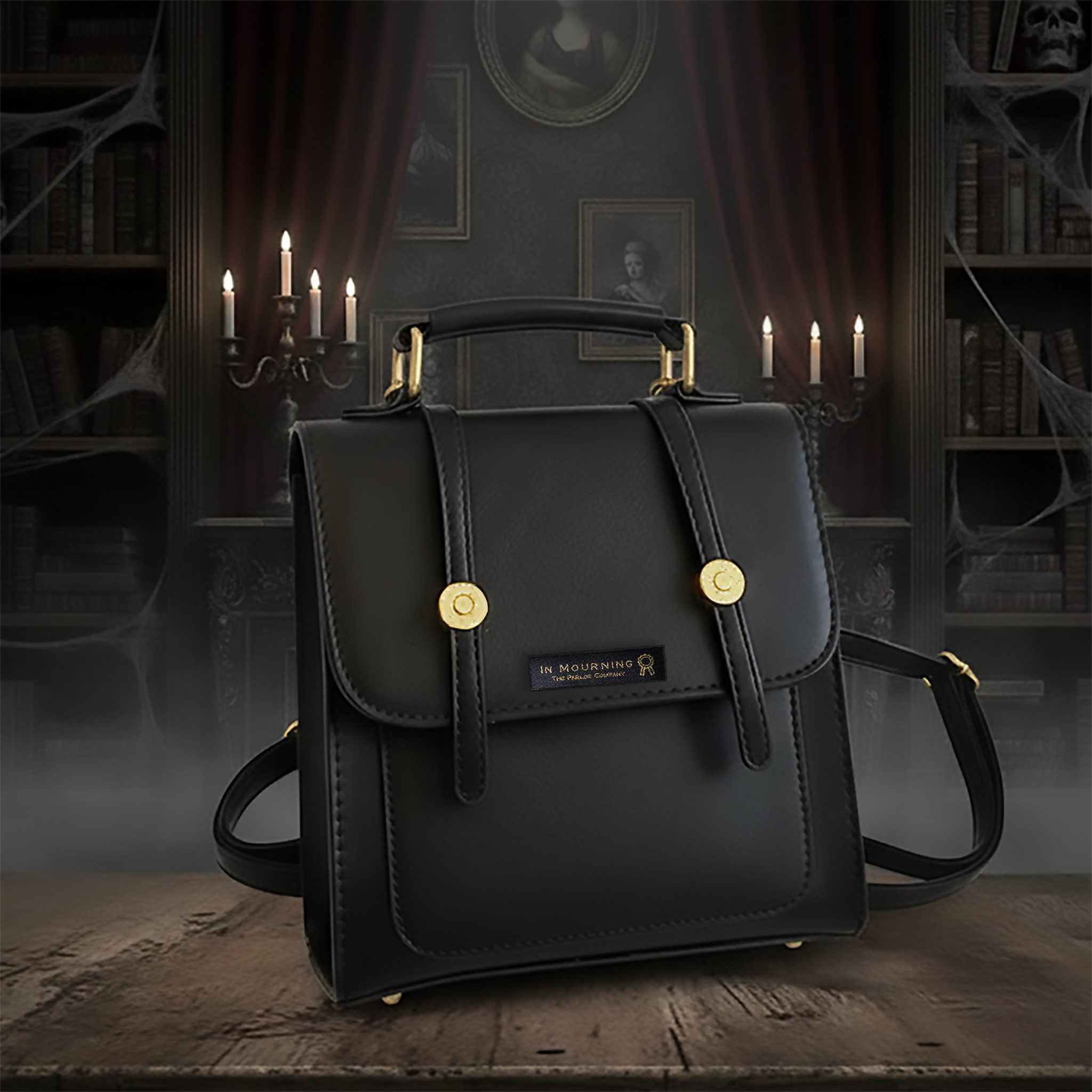 This versatile doctor's backpack is equipped with multi-functions, which can be utilized as a shoulder bag, a crossbody bag, or a handbag. Embellished with our signature "IN MOURNING" woven tag.